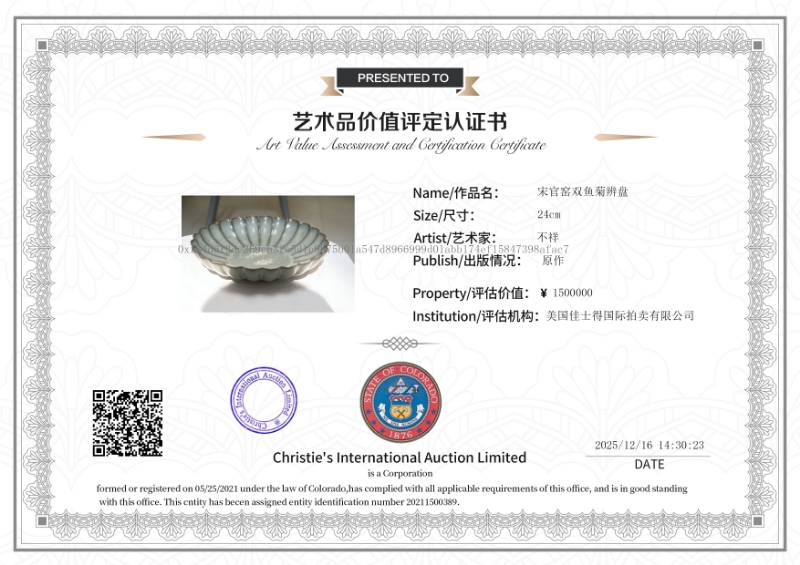 宋官窑双鱼菊辨盘